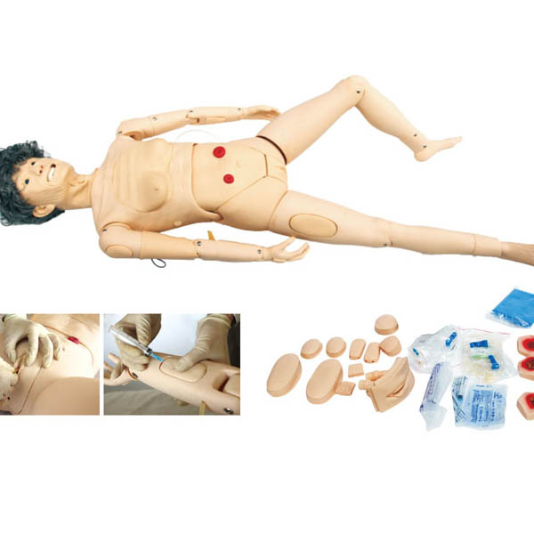 该 全功能老年人护理模型四肢关节度逼真,模拟关节僵硬,躯干部可前倾,可坐轮椅
